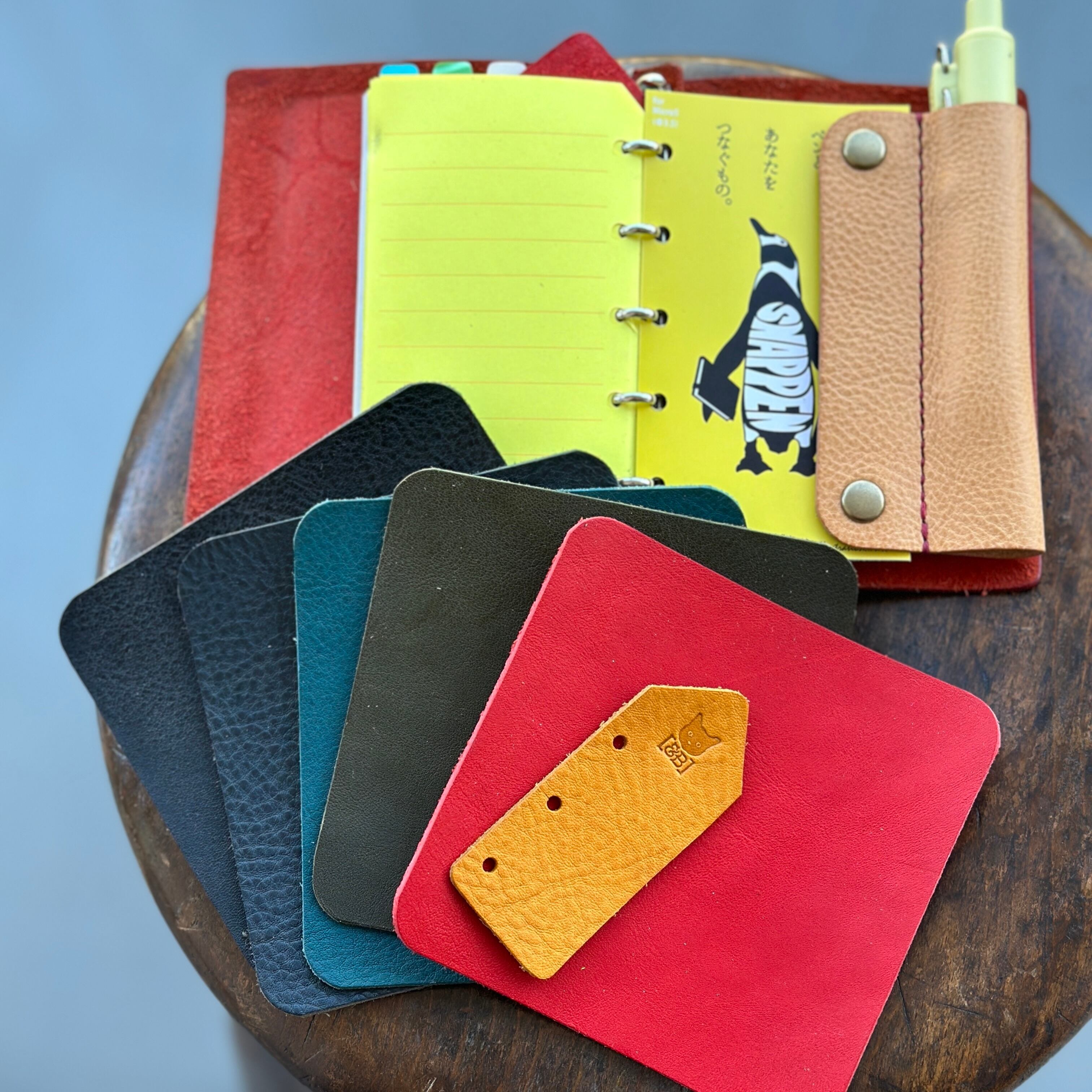 手帳と同じ色の革でつくっても、全部違う色にしても。